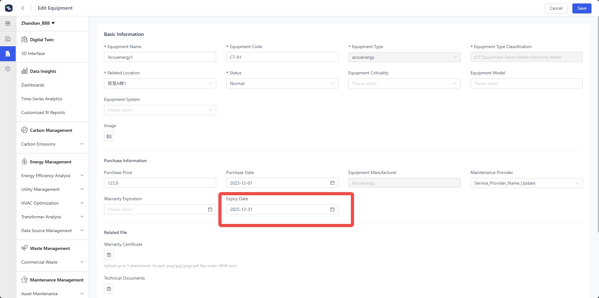 You can now input and track the expected end-of-life date for each equipment on the Equipment Ledger page, giving you a clear, centralized view of your equipment's complete lifecycle. This enhancement enables proactive planning for maintenance, replacement, and budgeting, helping to prevent unexpected downtime and optimize resource allocation.